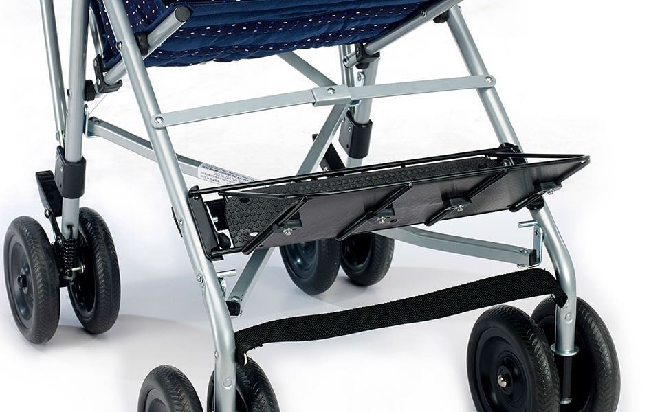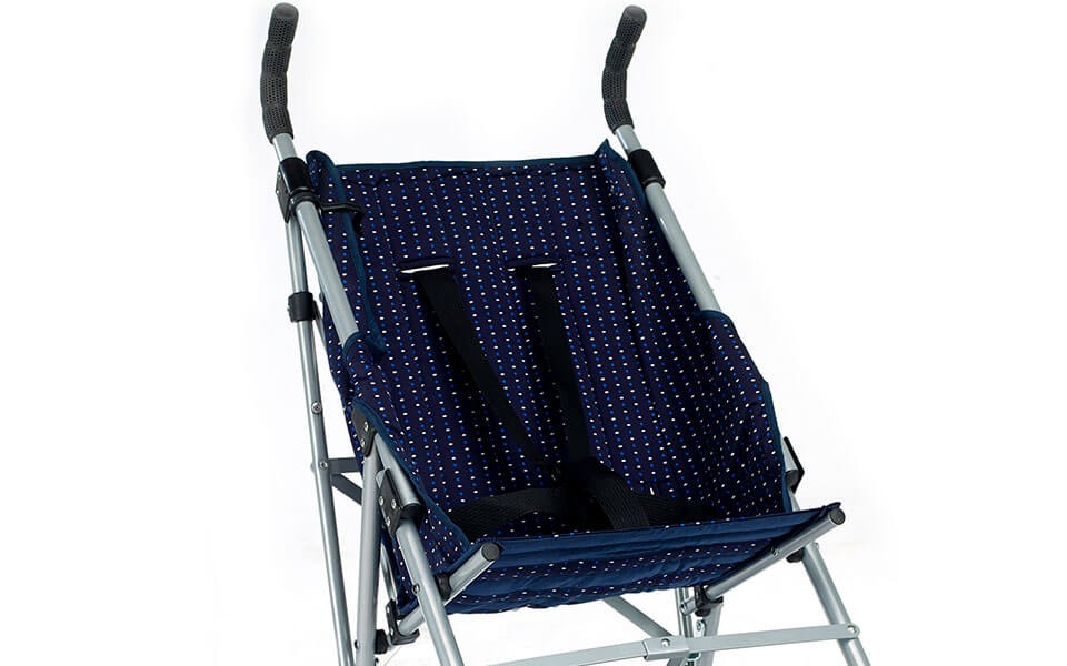 Silla de paseo para niños con parálisis cerebral, fabricada en acero de alta resistencia. Plegado muy sencillo y cómodo (tipo paraguas) para transportarla más fácilmente.